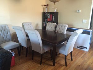 The dining chairs are elegant and comfy.